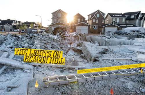 Alberta Venture‘s associate publisher, Joyce Byrne, and art director, Kim Larson, were both familiar with that cover and, while out after work one evening, they discussed how it would be cool to do a similar image of Calgary’s iconic Bow building, which has become a symbol of Alberta’s growing affluence and prominence on the national and international scenes. While the idea occurred long before the June flooding, that tragedy has added to the poignancy of the finished product.